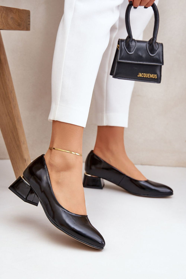 The shoes are made of high-quality natural leather. They have a soft, leather insole. Elegant pumps are suitable for many occasions. The heel is finished with a decorative element. Very comfortable model. Thanks to the stable heel, they are very comfortable to wear for many hours. Check out other models of pumps too!